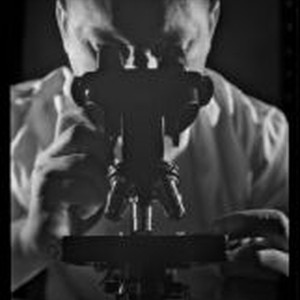 Access to this collection is generously supported by Arcadia funds. Close-up view of a man looking through a microscope, with tenebrist lighting Text from negative sleeve: David / Chinaman / Colonel Otto