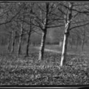 Access to this collection is generously supported by Arcadia funds. View of allée or orchard trees in rows with bare branches Text from negative sleeve: Salon - Misc. portraits