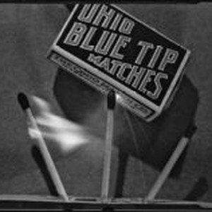 Access to this collection is generously supported by Arcadia funds. Photograph of 3 wooden matches with one burnt out and 2 still burning, placed below a box of Ohio Blue Tip Matches Text from negative sleeve: Portraits - matches - landscapes - apples