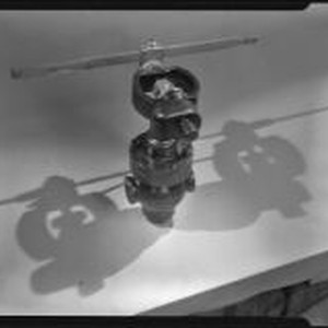 Access to this collection is generously supported by Arcadia funds. Close-up view of gas regulator equipment manufactured by the Wilgus Manufacturing Company, illuminated from both sides creating 2 shadows on the table. The parts are metal-cast with embedded inscriptions identifying the company and, on some, the part number, for example: “Wilgus Mfg. Co. 972." The location might be the Wilgus Manufacturing plant located at 1722 East Sixteenth Street from 1921 to at least 1944. Text from negative sleeve: Wilgus Gas Gauge