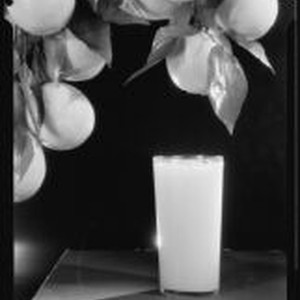 Access to this collection is generously supported by Arcadia funds. Advertisement photograph for "Sunjius" showing oranges on a branch suspended above a glass of orange juice on a table. Text from negative sleeve: Sunjius