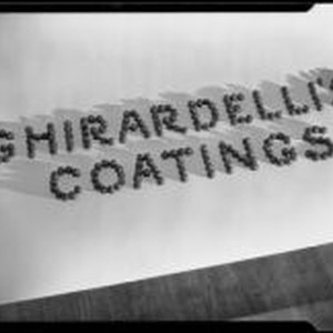 Access to this collection is generously supported by Arcadia funds. Advertisement photograph with "Ghirardelli's Coatings" spelled with chocolate bonbons. Text from negative sleeve: E. W. Ghiaradelli [sic]