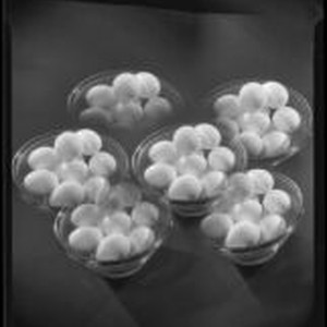 Access to this collection is generously supported by Arcadia funds. "BHGs" on the negative sleeve probably refers to the magazine "Better Homes and Gardens." Glass bowl of eggs appearing 5 times in a photomontage composition, possibly created for the magazine Better Homes and Gardens. Text from negative sleeve: E. W. B.U.S. & BHGs Broadside