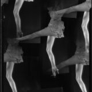 Access to this collection is generously supported by Arcadia funds. "BHGs" on the negative sleeve probably refers to the magazine "Better Homes and Gardens." Photomontage created with repeated images of a woman executing a kick, possibly for the magazine Better Homes and Gardens. She wears a short, ruffled satin skirt and heeled sandals. Text from negative sleeve: E. W. B.U.S. & BHGs Broadside