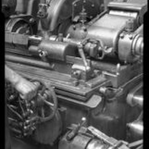 Access to this collection is generously supported by Arcadia funds. View of a technician's hand operating National Auto Shop machinery. Text from negative sleeve: National Auto Shop