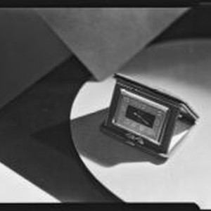 Access to this collection is generously supported by Arcadia funds. Brock & Company Jewelers was the most important jewelry and giftware store in Los Angeles. Founded by George A. Brock in 1903, it was sold in 1964 and the business ended s few years later. It was located at 515 West Seventh St. and had a 2nd location at the Beverly-Wilshire Hotel. Travel alarm clock with a leather case at the Brock & Company jewelry and gift store. Text from negative sleeve: Brock's 9- Oct. 1930.