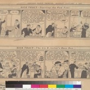 This material was selectively digitized from a larger resource or collection. Part of: Leonarde Keeler papers Detail of an album page. Cartoons titled, "Starting the New Year" and "The Lie Detector's Busy Day."