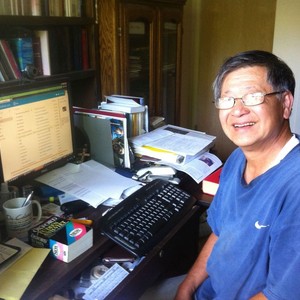 Scope/Content: Tuan Anh Nguyen sitting in his home office; Anaheim, CA; May 16, 2015; Photographer Desiree Nguyen