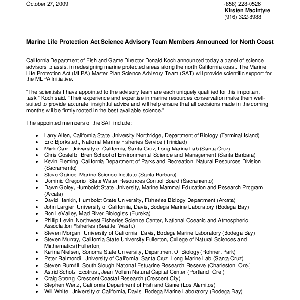 Text / CDFG Director Donald Koch announces members of the MLPA Master Plan Science …