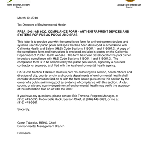 PPSA 10-01-AB 1020, compliance form - anti-entrapment devices and systems for public pools and spas