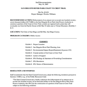 California State Coastal Conservancy San Dieguito River Park Joint Powers Authority Nature trails--California--San Diego County--Design and construction--Finance Coast to Crest Trail (Calif.)