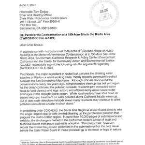 Text / Perchlorate contamination at a 160-acre site in the Rialto area