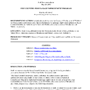 Scope/Content: File No. 05-109-03.; "Project Manager: Michael Bowen."; Title from PDF caption.; Scope and content: Staff recommendation: Authorization to disburse to the County of Trinity up to $375,000 of previously authorized Conservancy funds to implement fish-passage improvement projects at Ryan Creek ($160,000) and Little Brown's Creek ($215,000) within the counties of Mendocino and Trinity, respectively.