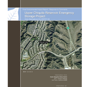 Final environmental impact report, response to comments : Upper Chiquita Reservoir emergency storage project; SMWD Upper Chiquita Reservoir emergency storage project final EIR - responses to comments