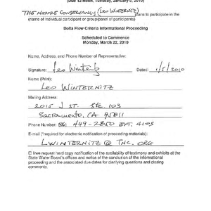 Text / Notice of intent to appear in the Delta Flow Criteria informational proceeding: …