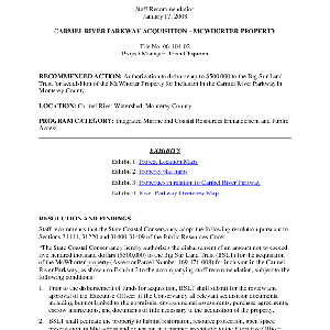 Scope/Content: Project No. 06-104-02.; "Project Manager: Trish Chapman."; Title from PDF caption.; Scope and content: Staff recommendation: Authorization to disburse up to $500,000 to the Big Sur Land Trust for acquisition of the McWhorter Property for inclusion in the Carmel River Parkway in Monterey County.