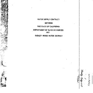 Water supply contract between the State of California Department of Water Resources and Dudley Ridge Water District