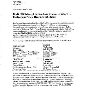 Draft EIS released for San Luis drainage feature re-evaluation ; public hearings scheduled