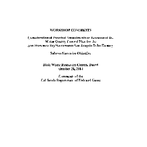 Workshop comments consideration of potential amendments or revisions of the Water Quality Control Plan for the San Francisco Bay/Sacramento-San Joaquin Delta Estuary salmon narrative objective