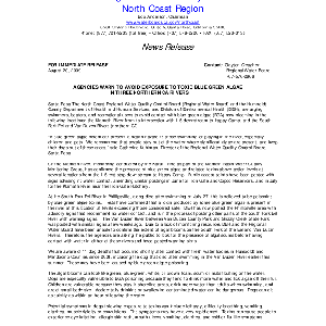 Text / Agencies warn to avoid exposure to toxic blue green algae in three …
