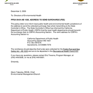 Scope/Content: To: Directors of Environmental Health.; "December 2, 2009."