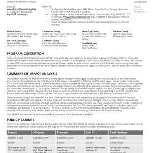 Availability of draft Program Environmental Impact Report for the San Francisco Public Utilities Commission's water system improvement plan: public notice