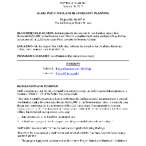 Scope/Content: Project No. 06-017-01.; "Project Manager: Betsy Wilson."; Scope and content: Staff recommendation: Authorization to disburse up to two hundred eighty-five thousand ($285,000) to the Sonoma Land Trust to complete final design and permitting for the restoration of the 2,327-acre Sears Point property in Sonoma County.