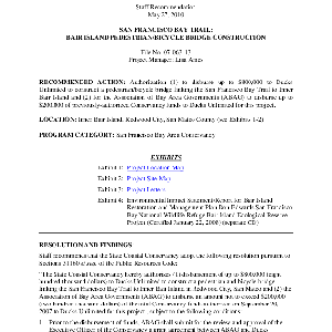 Scope/Content: Project No. 07-063-13.; "Project Manager: Lisa Ames."; Environmental Impact Statement/Report for Bair Island Restoration and Management Plan Don Edwards San Francisco Bay National Wildlife Refuge Bair Island Ecological Reserve Project (Certified January 22, 2008) provided at the meeting on a separate CD.; Scope and content: Staff recommendation: Authorization (1) to disburse up to $800,000 to Ducks Unlimited to construct a pedestrian/bicycle bridge linking the San Francisco Bay Trail to Inner Bair Island and (2) for the Association of Bay Area Governments to disburse up to $200,000 of previously-authorized Conservancy funds to Ducks Unlimited for this project.