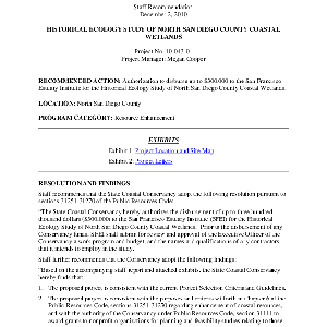 Staff recommendation, December 2, 2010: Historical ecology study of North San Diego County coastal wetlands