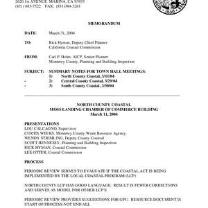 Scope/Content: North County Coastal, 3/11/04; Central County Coastal, 3/29/04; South County Coastal, 3/30/04.; "March 31, 2004."