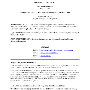 Scope/Content: Project No. 08-101-02.; "Project Manager: Laura Engeman."; Scope and content: Staff recommendation: Authorization to augment the Conservancy's November 6, 2008 authorization to the Land Trust of Santa Cruz County to include an additional acquisition parcel and restoration planning in Watsonville Slough.