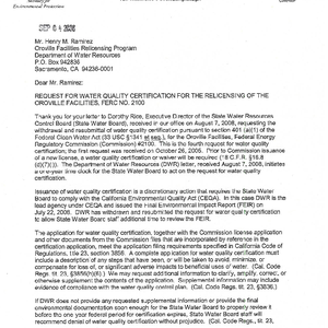 Text / Request for water quality certification for the relicensing of the Oroville facilities, …