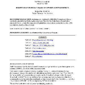 Scope/Content: Project No. 11-012-01.; "Project Manager: Su Corbaley."; Scope and content: Staff recommendation: Authorization to redirect $1,000,000 of Conservancy funds, previously granted to the Marin Agricultural Land Trust for the Corda Ranch Conservation Easement Project, toward the acquisition of agricultural conservation easements over the 1,194-acre Barboni Ranch in Marin County.