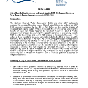 City of Fort Collins comments on Black & Veatch NISP EIS support memo on total organic carbon issues