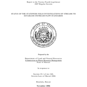 Status of the statewide field investigations of streams to establish instream flow standards: in response to Section 19.1 of Act 160, Session laws of Hawaii 2006