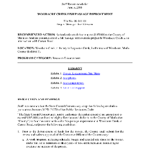 Scope/Content: Project No. 08-041-01.; "Project Manager: Joel Gerwein."; Title from PDF caption.; Scope and content: Staff recommendation: Authorization to disburse up to $185,000 to the County of Marin to fund the construction of a fish passage improvement project in Woodacre Creek at its intersection with Carson Road.