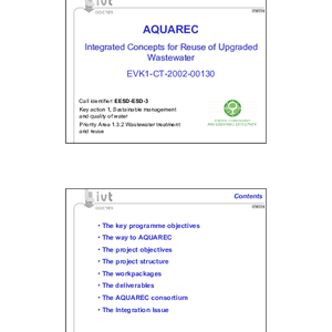 Integrated concepts for reuse of upgraded wastewater: AQUAREC - EVK1-CT-2002-00130