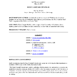 Scope/Content: File No. 07-022.; "Project Managers: Bob Thiel and Moira McEnespy."; Title from PDF caption.; Scope and content: Staff recommendation: Authorization to disburse up to $175,000 to the Associated Students of the University of California, Santa Barbara, to reconstruct the West Campus Bluff Trail, a segment of the California Coastal Trail.