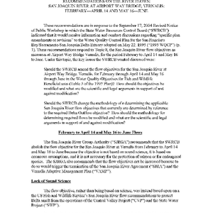 San Joaquin River Group Authority recommendations on the river flows: San Joaquin River at Airport Way Bridge, Vernalis, February-April 14 and May 16-June