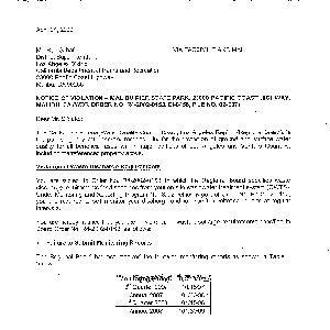 Notice of violation, Malibu Pier State Park, 23000 Pacific Coast Highway, Malibu, California (waste discharge requirements (WDR) order no. R4-2002-0153, CI-8456, file no. 02-037)