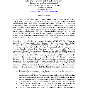 Impact of state and federal Delta water export projects on Delta water quality and aquatic resources: issues that need to be addressed