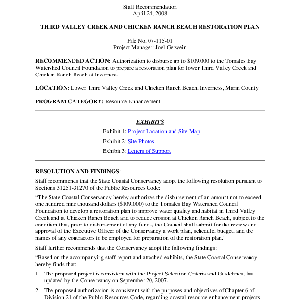 Scope/Content: Project No. 07-115-01.; "Project Manager: Joel Gerwein."; Title from PDF caption.; Scope and content: Staff recommendation: Authorization to disburse up to $109,000 to the Tomales Bay Watershed Council Foundation to prepare a restoration plan for lower Third Valley Creek and Chicken Ranch Beach at Inverness.