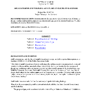 Scope/Content: Project No. 11-035-01.; "Project Manager: Su Corbaley."; Scope and content: Staff recommendation: Authorization to disburse up to $25,500 to the City of Arcata to design, produce and install interpretive and directional signage at the Arcata Marsh and Wildlife Sanctuary, in Arcata, Humboldt County.