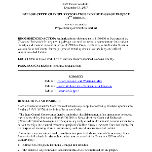 Stewards of the Coast and Redwoods California State Coastal Conservancy Fishways--California--Sonoma County--Design and construction--Finance Culverts--California--Sonoma County--Design and construction--Finance