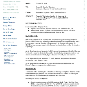 Text / Financial Workshop Number 6: approval of Sacramento Regional County Sanitation District financial …