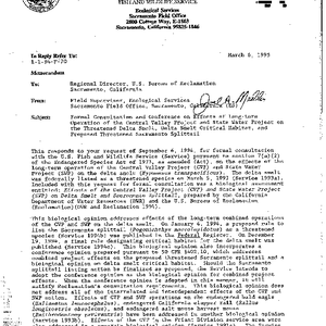 Formal consultation and conference on effects of long-term operation of the Central Valley Project and State Water Project on the threatened Delta smelt, Delta smelt critical habitat, and proposed threatened Sacramento splittail