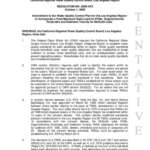 Scope/Content: Tentative.; Caption title.; At head of title: California Regional Water Quality Control Board, Los Angeles Region.; "October 1, 2009."; "Resolution No. 2009-XXX."