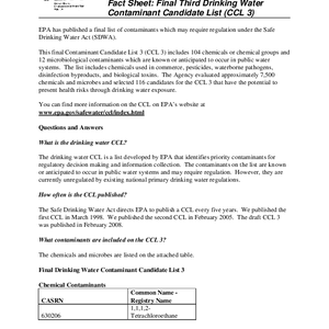 Text / Final third drinking water contaminant candidate list (CCL3) fact sheet