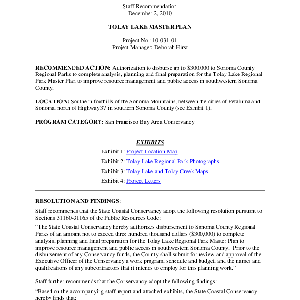 Text / Staff recommendation, December 2, 2010: Tolay Lake master plan