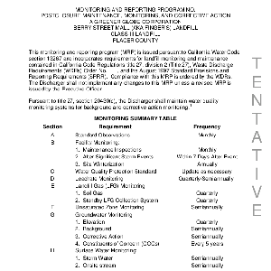 Postclosure maintenance, monitoring, and corrective action, A Greener Globe Corporation, Berry Street Mall (aka Finger's) Landfill, class III landfill, Placer County
